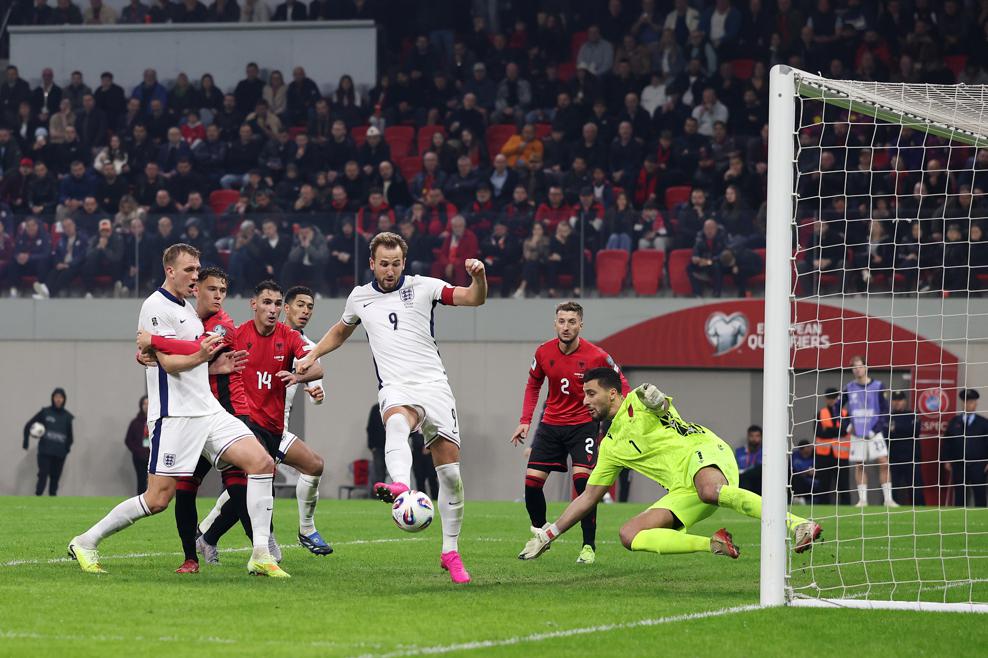 در ورزشگاه آلبانی، انگلیس که صعود خود را قطعی کرده بود با ترکیبی از بازیکنان اصلی و ذخیره به میدان آمدگ انگلیس در نیمه اول چند موقعیت جدی برای گلزنی ساخت اما هیچ یک به ثمر نرسید و در نهایت نیمه اول بدون گل به پایان رسید. نیمه دوم آلبانی سعی در جبران داشت و موقعیتهایی به دست آورد اما نتوانست به گل برسد. انگلیس نیز چند بار تا آستانه گل پیش رفت اما موفق نبود. در ادامه تلاشهای شاگردان توخل به نتیجه رسید و انگلیس موفق شد در دقیقه ۷۴ توسط کین به گل اول دست پیدا کند، انگلیس در دقیقه ۸۲ باز هم توسط کین به گل دوم رسید و در نهایت بازی با نتیجه ۲ بر صفر مساوی به پایان رسید.