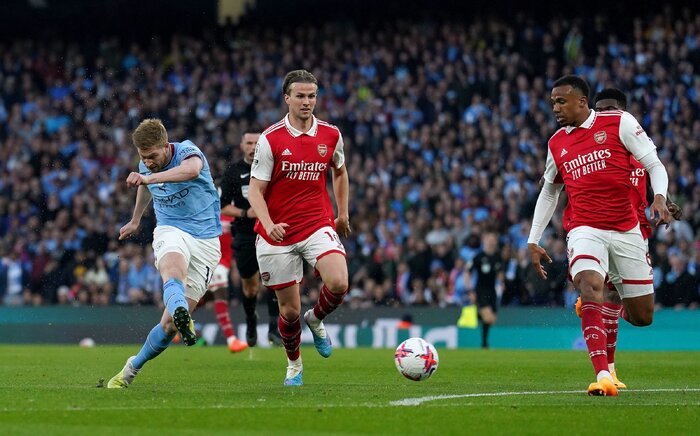 نیمه دوم سیتی زرنگتر از آرسنال بود و از لحظات خاصی برای ضربه زدن به حریف استفاده کرد. اشتباه مارتین اودگارد توپ را به هموطنش ارلینگ هالند رساند و پاس ستاره نروژی برای کوین دیبروینه در دقیقه ۵۴ گل سوم را رقم زد. در دقیقه ۸۶ راب هولدینگ یکی از گلها را پاسخ داد. در دقیقه ۵+۹۰ سرانجام ارلینگ هالند هم پایش به گل باز شد. آرسنال که نشانی از تیم خوب و مدعی همیشگی نداشت، در نهایت این بازی مهم را هم واگذار کرد تا در آستانه از دست دادن جام قرار بگیرد.